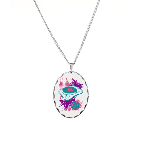 Necklace Oval Charm Neon Turntable 60s 70s 80s 90s Vinyl DJ Music Overview